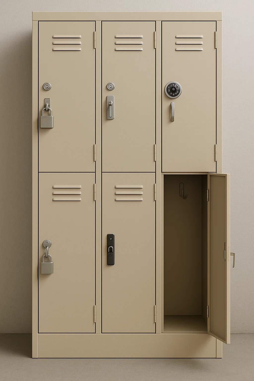 ล็อคอิเล็กทรอนิกส์: ปุ่มกด การรูดบัตร หรือการเข้าถึงไบโอเมตริกซ์ (พบได้ทั่วไปในการตั้งค่าสมัยใหม่)